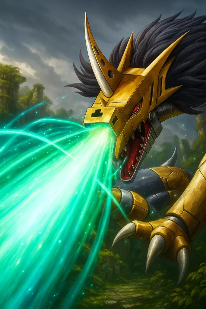 • Aliento de Metal (Metal Breath): Su ataque más característico, un torrente de energía fría y destructiva disparado desde su hocico. ¡Congela todo a su paso!